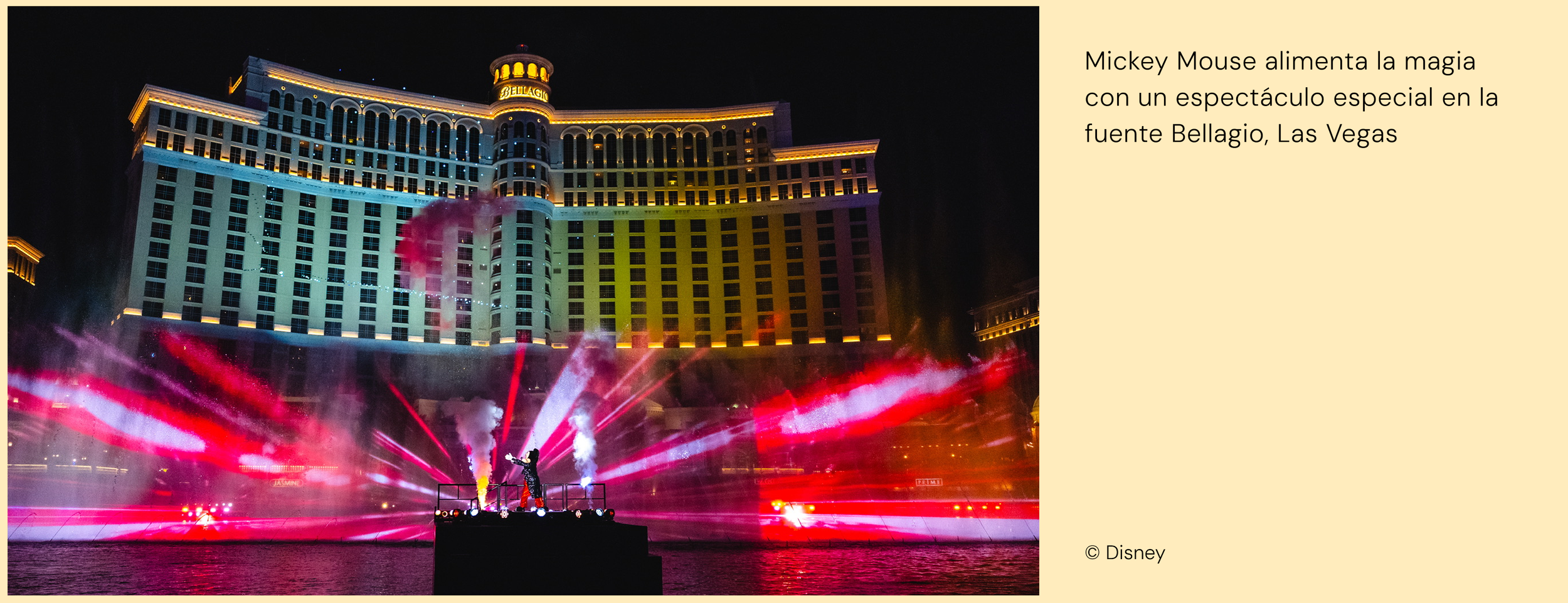 La campaña se apoya en el impacto generado durante el Gran Premio de Las Vegas en noviembre de 2025, que incluyó una intervención de Mickey Mouse en las fuentes del Bellagio.